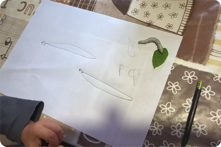 Per giorni abbiamo continuato a dargli da mangiare e a pulire la loro piccola casetta, quando improvvisamente uno dei bachi ha iniziato a girare sul piccolo albero compreso nel kit didattico.