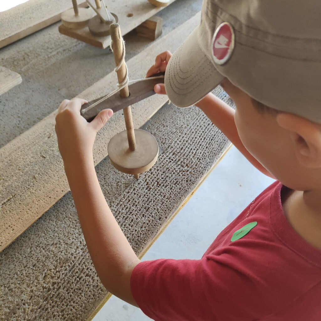 I bambini hanno potuto provare un vero trapano a volano preistorico, dopo aver osservato alcuni reperti dell’epoca. E’ sempre fonte di grande soddisfazione poter fare un piccolo buco, con un trapano così semplice ed essenziale.