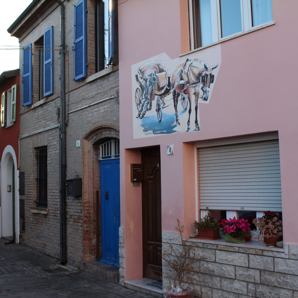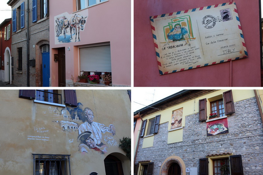 Ma questo borgo ci parla anche di un grande personaggio nato proprio qui in via Dardanelli 10, Federico Fellini. Lui amava particolarmente questo luogo e a lui e ai suoi film sono dedicati molti murales perfettamente conservati che si trovano sopra le case del borgo di San Giuliano.