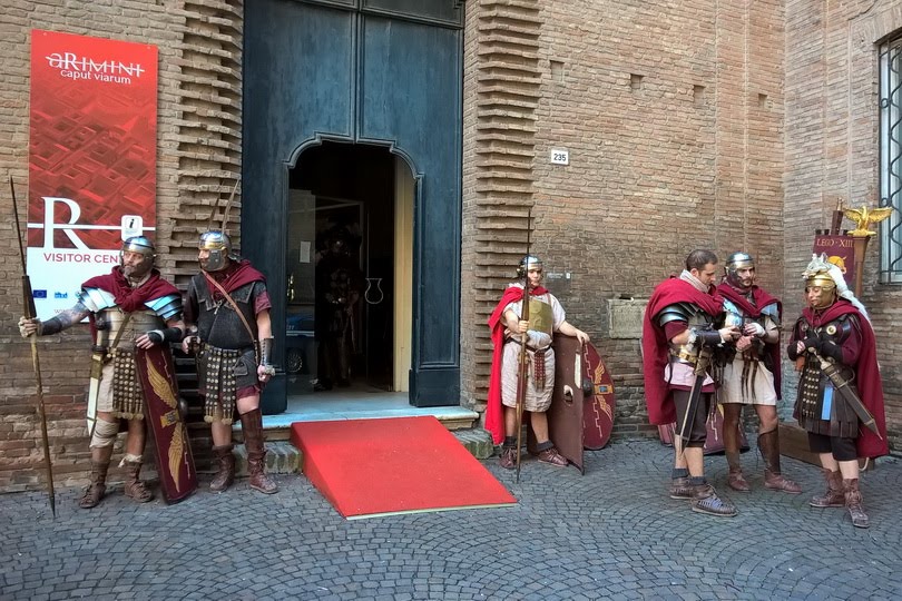 Ma le sorprese nel centro di Rimini non finiscono qui, un pomeriggio passeggiando abbiamo incontrato un vero reggimento romano qui nel cuore della città: sono i XIII Gemina un’associazione culturale che si pone come obbiettivo quello di raccontare il modo di vivere degli antichi romani del I secolo d.c.