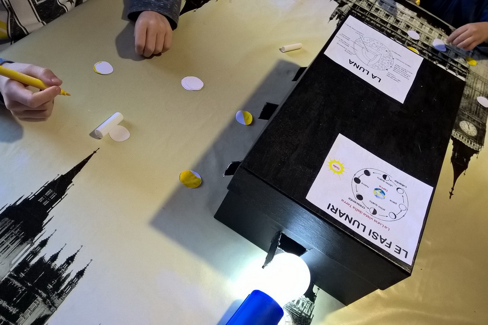 Il modo più semplice per spiegare a un bambino perchè la luna nel cielo cambia ogni sera forma, è cercare di ripetere l’esperimento a casa. Per farlo abbiamo creato una scatola delle fasi lunari.