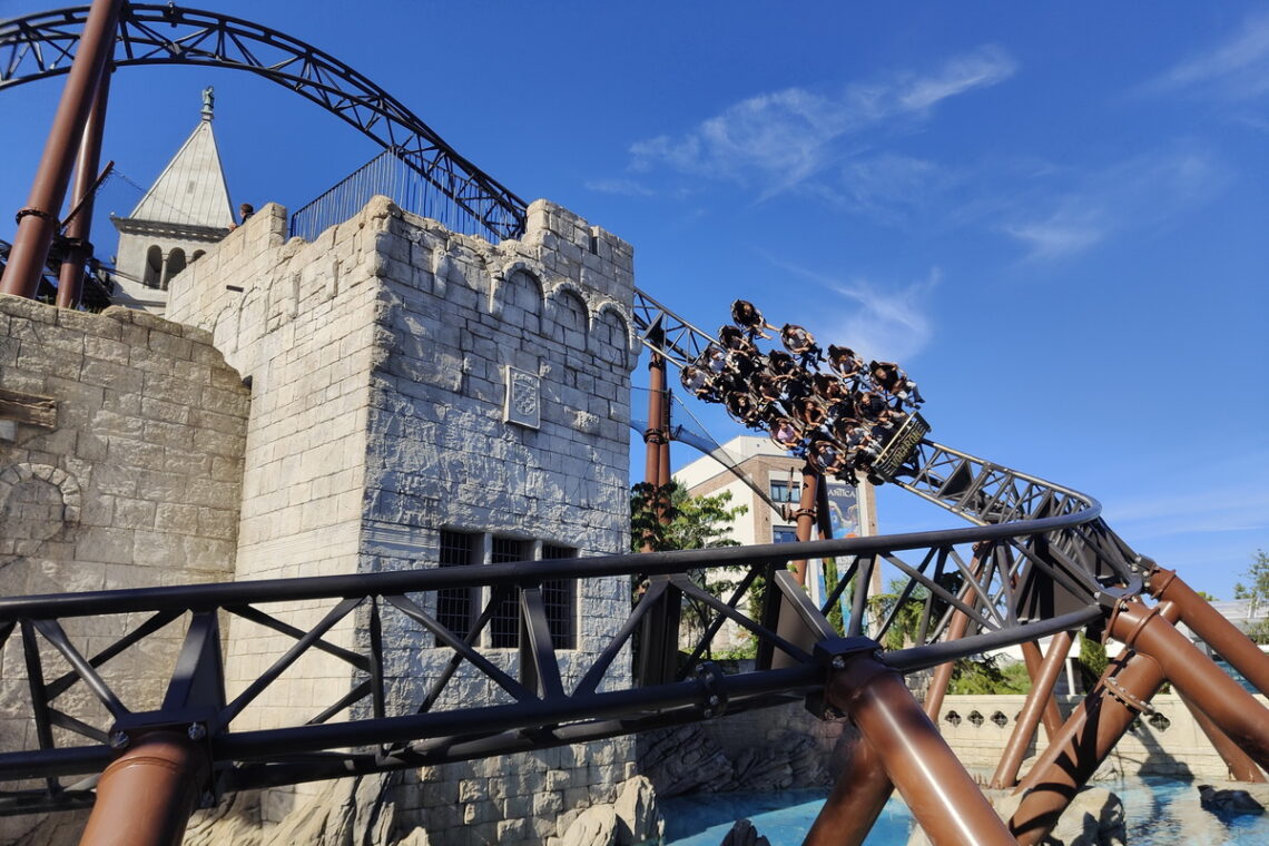 Tra le montagne russe che ci hanno colpito di più c’è anche la spettacolare CanCan Coaster, un roller coaster indoor ambientato nel mondo del celebre cabaret parigino Moulin Rouge: un mix perfetto di adrenalina e scenografia.