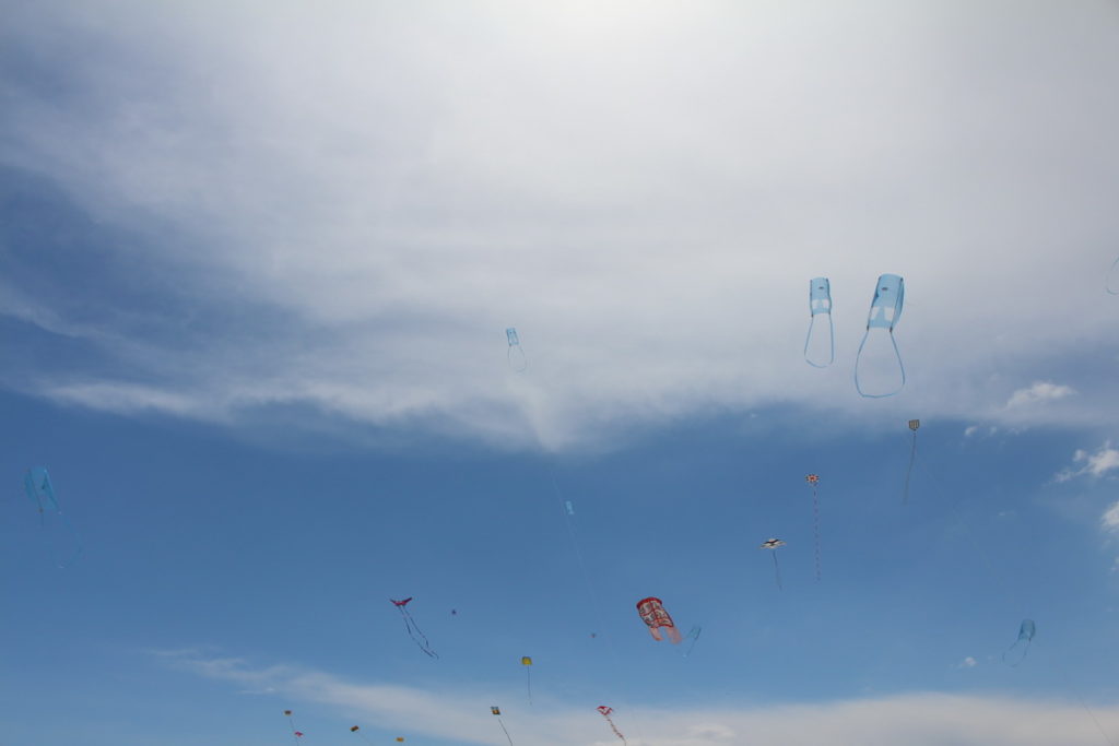 Non abbiamo mai visto così tanti aquiloni, e sopratutto così belli. Siamo tutti col naso all’insù. Grande C. corre da una parte all’altra e vorrebbe un suo aquilone, fortunatamente ha potuto partecipare ad un laboratorio per bambini e ne ha costruito uno tutto suo. Piccolo G. guardava il cielo colorato, pieno di divertenti figure svolazzanti. Fra quelle figure vola l’aquilone del suo fratello maggiore. Un aquilone semplice ma lui lo guida fiero come se fosse un’immenso drago al suo comando.