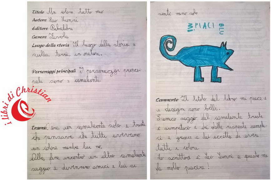 Commento: Il titolo del libro mi piace e i disegni sono belli. L’amico saggio del camaleonte triste è simpatico e dà dalle risposte semplici e grazie a lui accetta di avere tutti i colori.