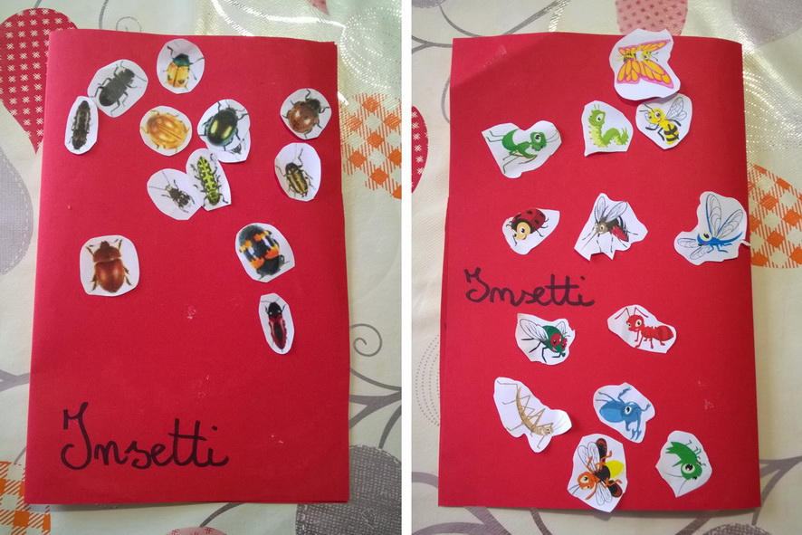Diciamo che far lavorare insieme due bambini di età diverse richiede tanta e tanta pazienza! Nel caso del lavoro degli insetti è stata la novità di poter usare la colla in autonomia che lo ha spinto a fare il suo lavoro. Era entusiasta del fatto che il fratello maggiore tagliava e lui incollava, nel mentre lo interrogava sugli insetti!