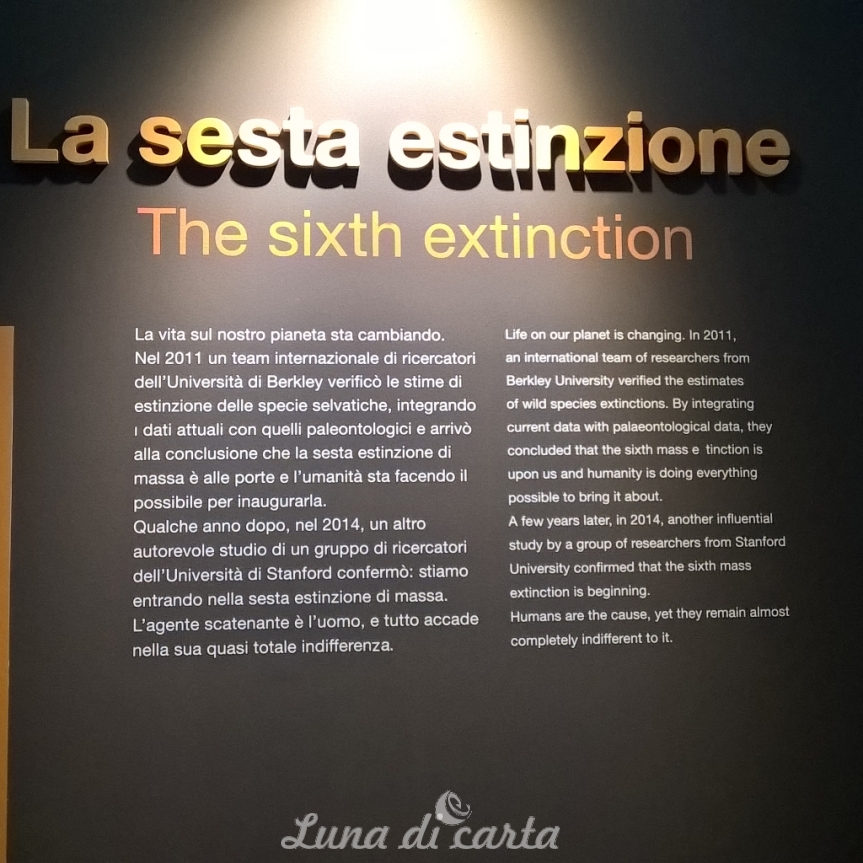 E non vi nego che è stato davvero triste far vedere ai miei bambini animali estinti: leoni, zebre, uccelli di vario genere che oggi non esistono più. Saremo noi i prossimi?