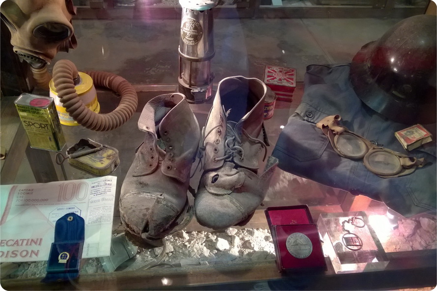 In questa sezione è raccontato il quotidiano della vita dei minatori: i caschi, i vestiti, le scarpe e tutti gli accessori necessari per scendere nelle viscere della terra. Una vita sicuramente molto dura, ma che ha aiutato a vivere tante famiglie della zona in maniera decorosa.